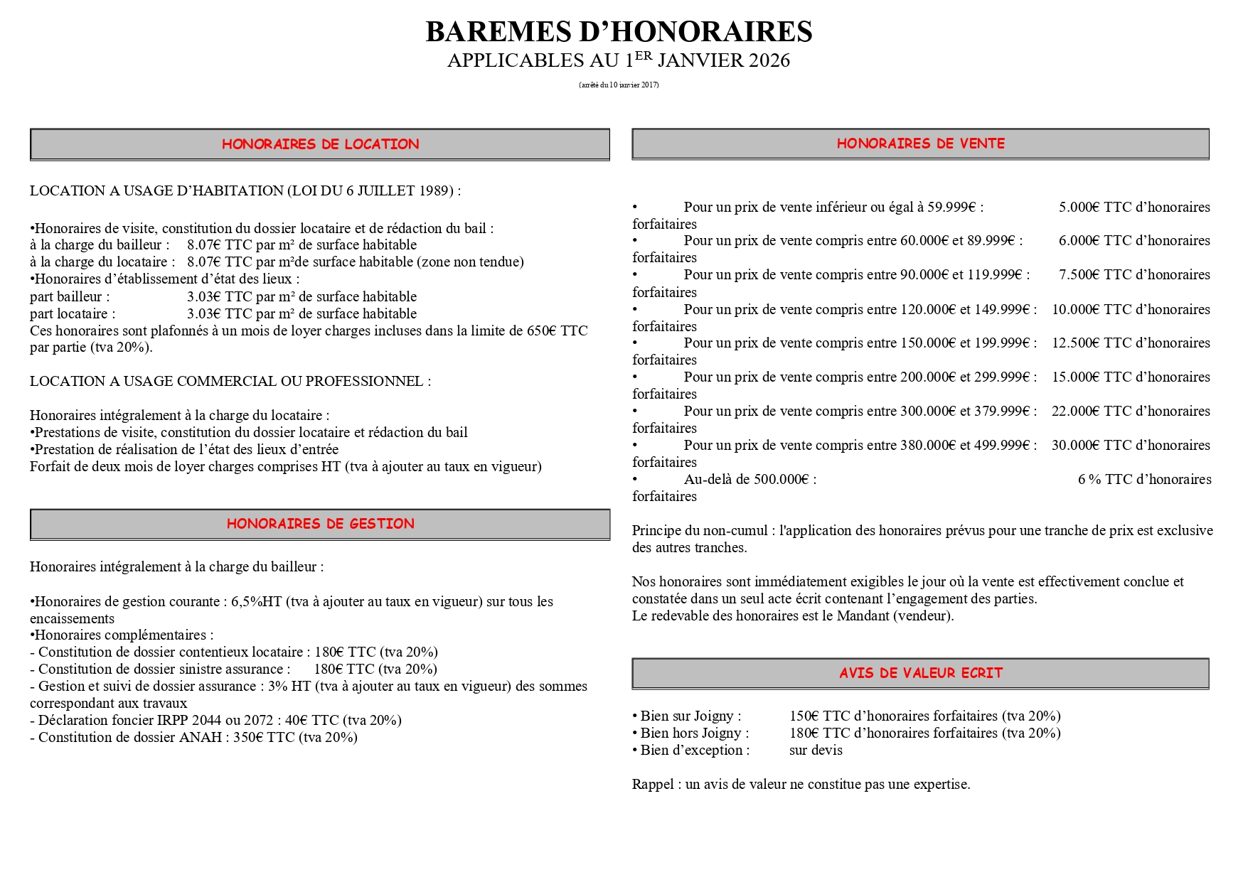 Barème d'honoraire Date de mise à jour : 07/01/26 Date de création : 13/12/17 Nous contacter J’accepte de recevoir des informations sur l’immobilier, les nouvelles réglementations et les nouvelles offres et produits personnalisés de Agence Favart*. Oui Non Si vous cochez non, vous indiquez que vous ne souhaitez pas recevoir de lettre d’information sur l'actualité de l’immobilier, les offres et produits de Agence Favart. En cliquant sur Envoyer vous acceptez de recevoir des informations concernant votre projet. type_ca mail_ca Choix de l'agenceAgence Favart form.agence * Champs obligatoires Envoyer Recueil de vos informations personnelles afin de pouvoir gérer la relation client et apporter conseils et informations complémentaires au niveau de la marque Agence Favart et le cas échéant au niveau des partenaires et prestataires. Les données transmises via ce formulaire sont destinées uniquement au personnel de Agence Favart et sont conservées pour une durée n’excédant pas celle nécessaire à la réalisation des finalités précitées. Conformément au Règlement européen n°2016/679/UE du 27 avril 2016 sur la protection des données personnelles et à la loi « informatique et libertés » du 6 janvier 1978 modifiée, vous disposez d'un droit d'interrogation d'accès, de rectification, d’effacement, de portabilité et de limitation du traitement des données vous concernant ainsi que du droit de communiquer des directives sur le sort de vos données après votre mort. Vous avez également la possibilité de vous opposer au traitement des données vous concernant pour motifs légitimes. Vous pouvez exercer ce droit par courrier électronique adressé à : accueil@agencefavart.fr, ou par courrier à Agence Favart - 6 Quai Henri Ragobert - 89300 - Joigny, accompagné d'une copie d'un titre d'identité. Pour plus d'informations consulter nos Mentions légales. RNous appeler